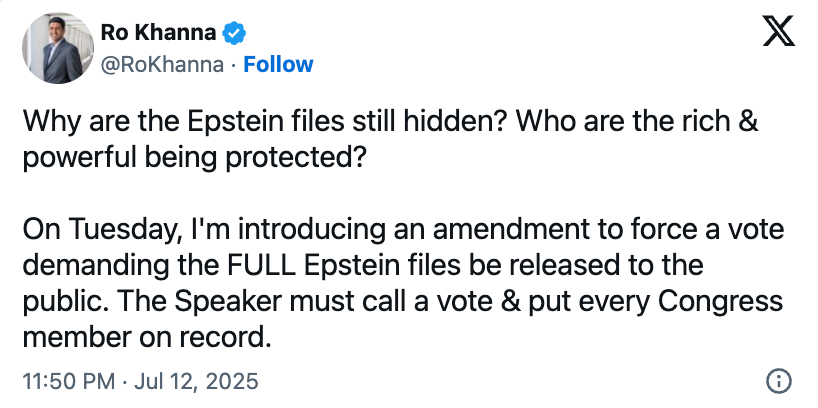 Others like, Rep. Ro Khanna (D-CA), are going all in, wondering, “Who are the rich & powerful being protected?”