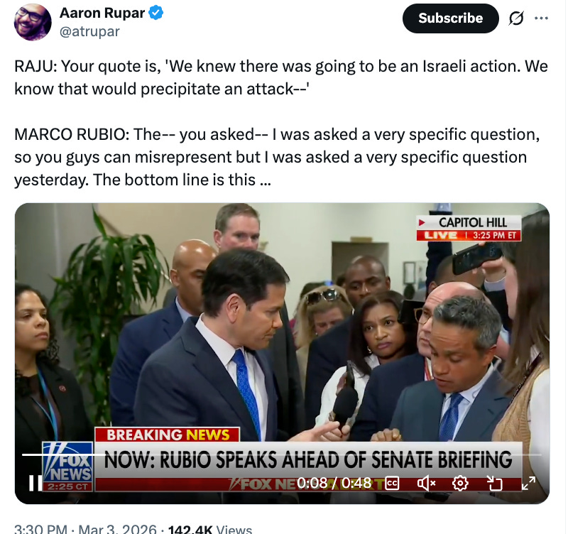 More on that from Axios: Rubio’s war remarks blow open MAGA’s Israel divide