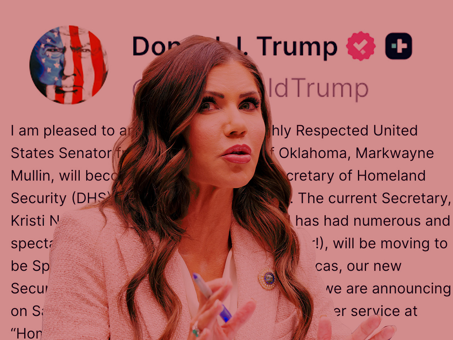 At one point, she mentioned an upcoming event appearance she has with Trump; it’s unclear whether she will attend as DHS secretary or in her new, fantastical sounding role: Special Envoy for The Shield of the Americas. Trump said he’d swap in Sen. Markwayne Mullin (R-OK) “effective March 31, 2026.” It’s unclear how that’ll work, too, since DHS secretary is subject to Senate confirmation.