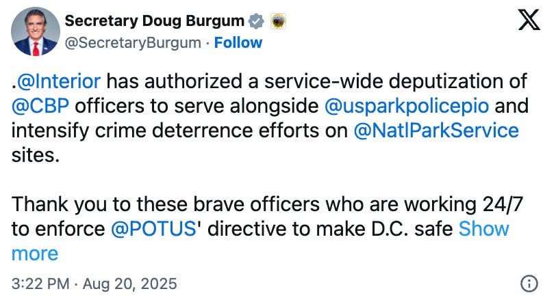 Trump’s allies have been doing gymnastics ever since he federalized the D.C. police to 1.) help justify his baseless takeover and 2.) prove their fealty by adding troops to the cause. Case in point today: